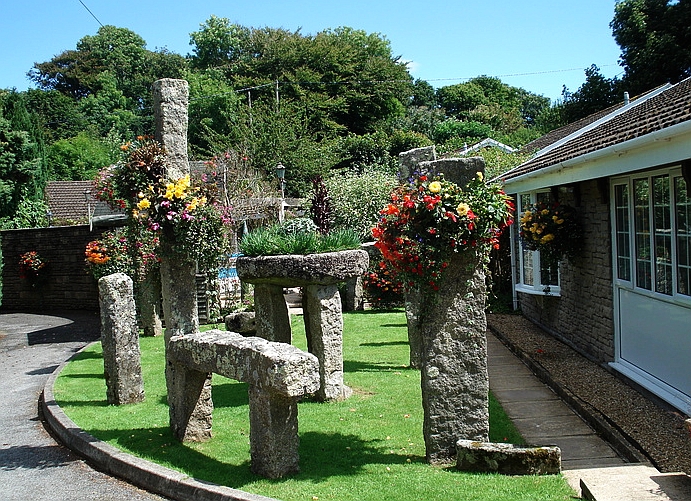 Having established that point up front, let us have a look at what he, or some creature or other, has produced. My, it looks juicy! It’s just a trilithon and a turd, that is to say, bluestone, but what impresses us most is what appears to be–yes!–a ditch and bank surrounding the, uh, construction. By our conventions he gets at least an extra druid for that.