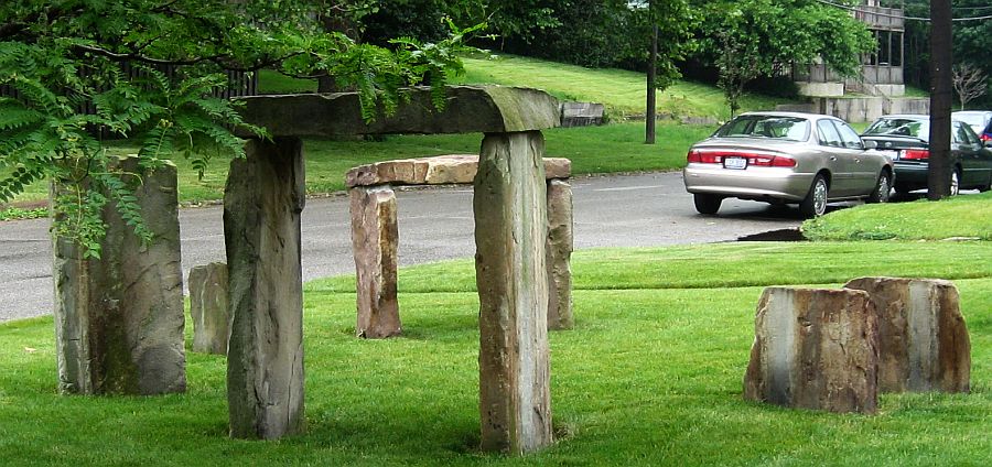 Okay, yes, as you point out, you pedant, surely they mean megalithic rather than monolithic here. But it does show that the sculptors did have Stonehenge in mind, not the case, we’re told, about the campus sculpture commonly called Stonehenge at the University of California at San Diego. We must say it does have a nice looming effect. We like it much more than the Rolla Stonehenge at the Missouri University of Science and Technology in Rolla, Missouri. That one is more functional, though, while this is just, well, art. There’s something very robotic about that Rolla unit.