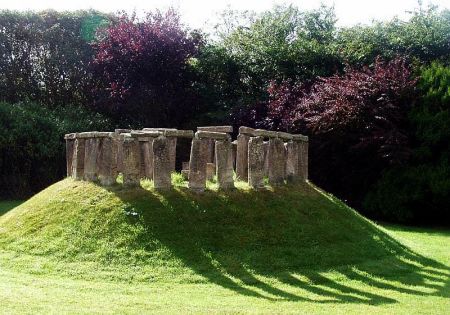 We can’t see this replica well enough to judge it, but it looks like a 7½ druid circle, give or take a half druid. Not sure why, but we like that it’s on the little hill. Yay! Finally posted it.