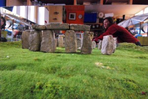 The picture at the top is the finished product, but we like all of the pictures on her Stonehenge page. Her process is fascinating. (Read this and you’ll see!) This is one our favourite small Stonehenge models of all time. She may not have included details like the ditch and bank, but she makes up for it with the car park. And the Stonehenge itself has the feel of accuracy and that grey huddled look that so few hengers manage. She has captured or rather conjured an indescribable feeling in the final work. Score: 7½ druids! (See the comments for Simon’s appropriate suggestion on scoring.)