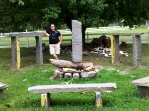 Mike tells us, “…my brother and I went to Stonehenge a few years ago and when we got back I acquired these rocks. We decided to build a mini Stonehenge. We built it by hand in 2009 and its made out of old granite curbs from the 1850’s from Camden, NJ.” Another cautionary tale illustrating the Clonehenge Effect. (But the bit about the old curbs is brilliant, of course, even if it is Camden.)