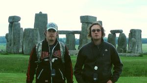 But no, Walkerhenge is named after its creators, Edith and Barry Henge. Oops, no! That should be Michael and Tim Walker, seen here being infected with the Stonehenge brain virus on a typically sunny warm day in Wiltshire.