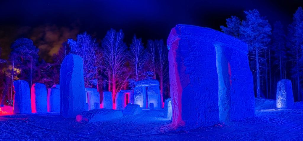 An article about the snowhenge in Finnish STT info says “The multiple Finnish master of ice sculpture Anssi Kuosa has been responsible for the sculpture together with the world champion of Mongolian ice sculpture Lkhagvadorj “George” Dorjsure. Kola asked Brendan Savage, an Irish creative construction technology consultant with more than 30 years of experience in large structures and scale, to join the project.“