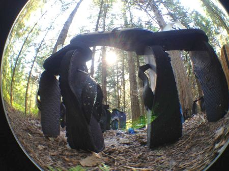 Now to the bigger question. Why does Burning Man generate so many Stonehenge replicas? Why, in fact, do festivals in general breed Stonehenge replicas at a fair rate? We are reminded not only of the many Burning Man replicas (mentioned here and here in a list that is probably not comprehensive), but also replicas including the one at the Audio Soup Festival, one at the Elf Fantasy Fair in 2008, and one at Ireland’s Oxegen Music Festival in 2009. It seems that the Mutoid Waste Company has set up a few henges at festivals, there are Hugh Jart’s Dubhenge and Banksy’s Privy Henge, both of which showed up at the Glastonbury Festival on, different years, and of course the wonderful Citrus-Henge at the lemon festival in the Riviera one year!
