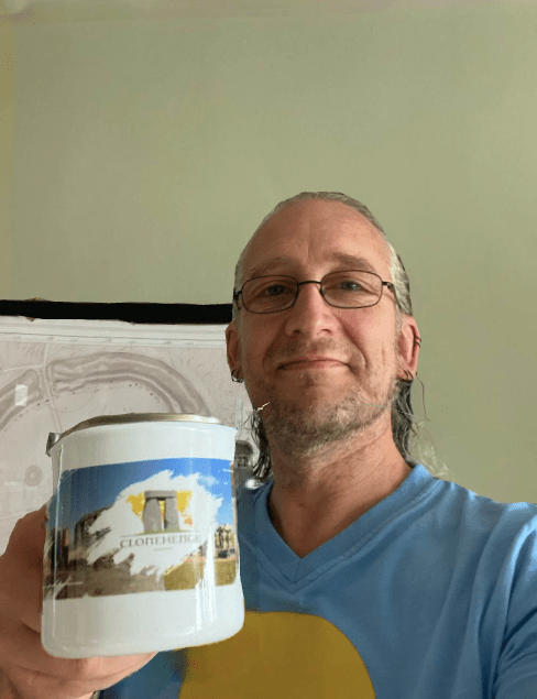 And here is friend Timon Greenwood with a Clonehenge banner mug!