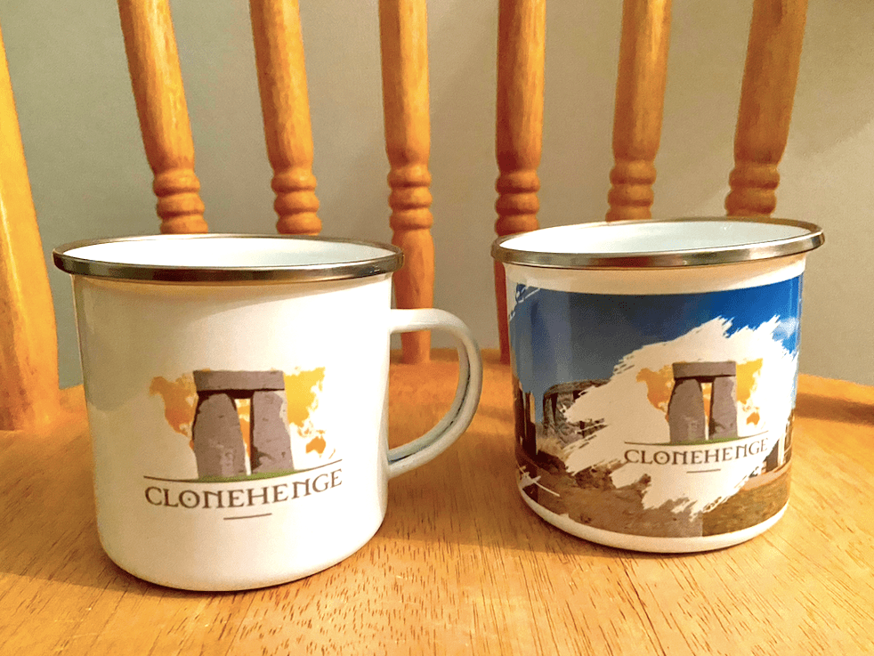 The Clonehenge mugs. I’m not sure both versions on all stores right now but that will happen.
