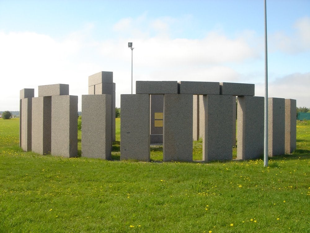 Because of Kari Kola’s brilliant Snowhenge we’ve been thinking a lot more about Finland lately. (We can’t really say this is Finland’s day in the sun. We believe that day is in June. Haha. Sorry.) Sadly the wonderful Snowhenge can’t be added to our List of Large Permanent Replicas since before long it will melt, but that doesn’t mean Finland doesn’t make our list at all! Near the border between Finland and Sweden on the shores of the Gulf of Bothnia in a park in the city of Kemi stands a granite sculpture modeled after Stonehenge, entitled Stone Age. It was designed by artist and poet Keijo Nevaranta and donated to the city in 1998.