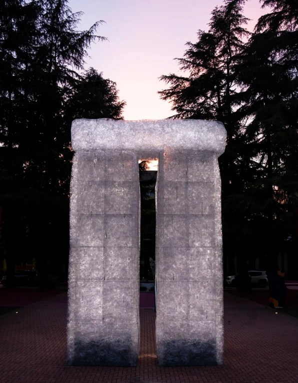 National Geographic’s 2019 campaign “Planet or Plastic” included a competition for young architects to create an art installation representing the topic, one that could become a landmark. Among the over 1600 entries from 86 countries was this remarkable trilithon made from bales of crushed plastic water bottles created in Milan by the architectural group VATRAA and entitled “Plastic Monument”. VATRAA, based in London and Bucharest, as founded by two young Romanian architects Anamaria Pircu and Bogdan Rusu.